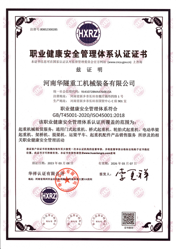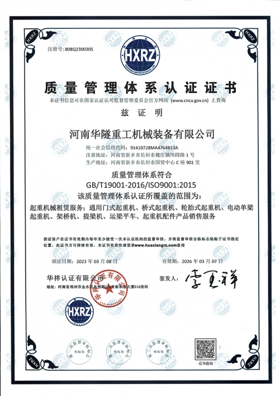 河南華隧重工機械裝備有限公司主要從事通用門式起重機、橋式起重機、電動單梁起重機,輪胎式起重機、架橋機、提梁機、遠梁平車、鋼絲繩電動萌蘆、卷揚機、起重配件制造、銷售:起重機械租賃、安裝和維修,起重設備園收,機械設備維修,鋼結構工程承包,橋梁工程及技術咨淘服務,銷售五金制品、機電設備:建設工程監理,建設工程設計,各類工程建設活動,建筑勞務分包,建筑物折除作業,施工作業,工程管理服務,土石方工程施工,裝如發運?! 」疽淹ㄟ^IS0國際質量、環境、健康與安全三合一標準認證,特種設備制造許可證和特種設備安裝改造維修許可證。擁有完熟的質量管理體系。嚴格的管理制度,強大的生產能力和先進的檢測手段,在保證產品質量的同時,也具備了極強的市場競爭力?! 」緢猿挚萍紕撔聻槔砟睿a品質量為核心,注重信譽,建立了減信可靠、快捷、思速。便利周到的售后服務網絡?! ∥覀儞碛械募夹g專家和技術服務隊伍為客戶提供充善的售前技術支持和全天候的售后服務體系,讓您無后顧之憂,享受一站式的超值服務。  “華隧重工,伴您成功“是華隧重工永遠的宗指,真被的希望與各界朋友攜手并進。共創輝準!